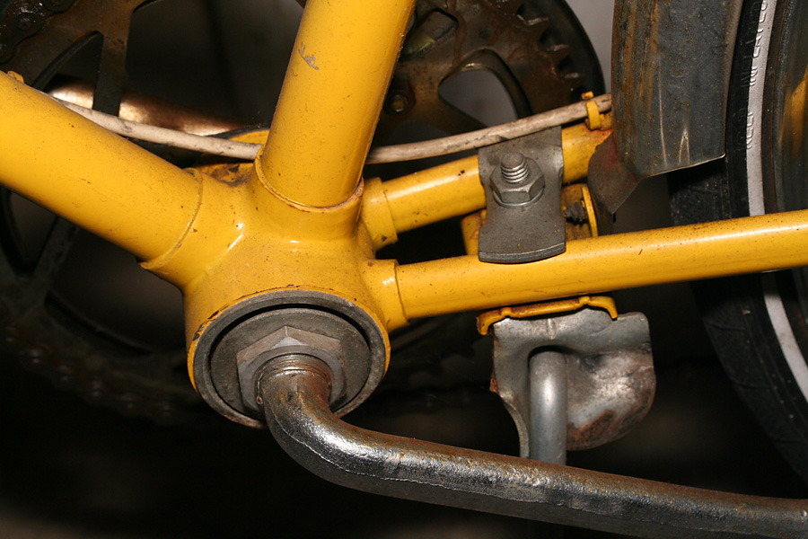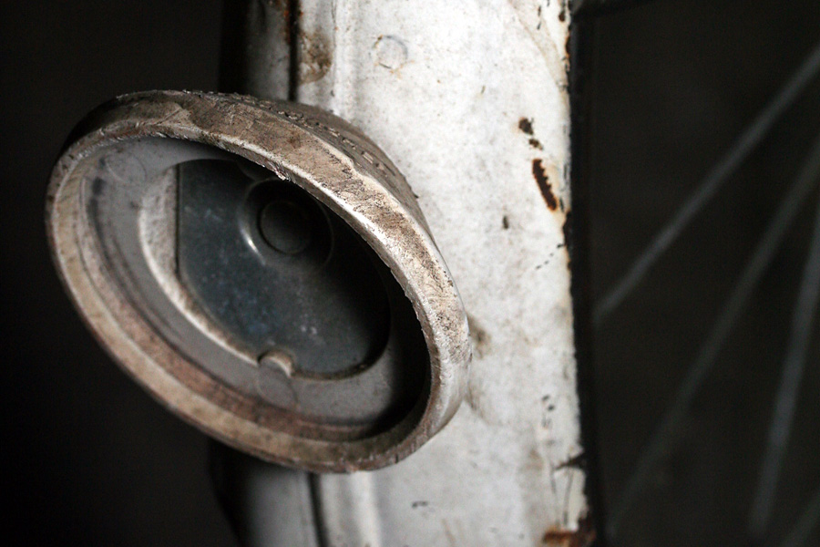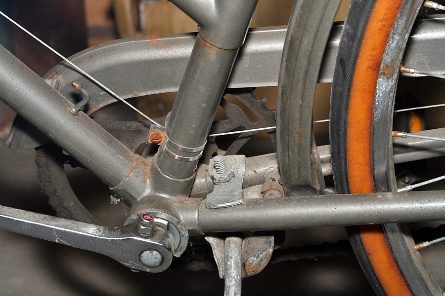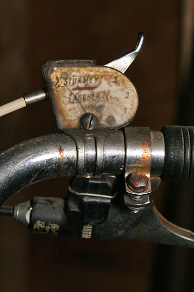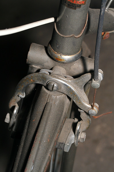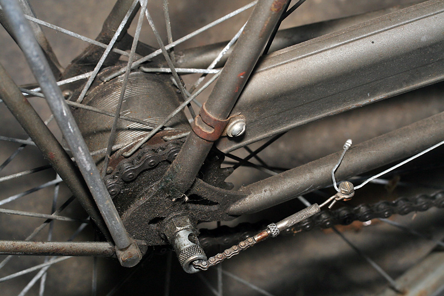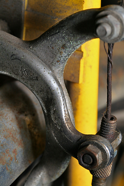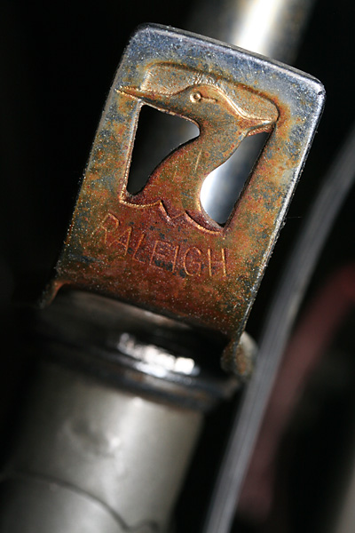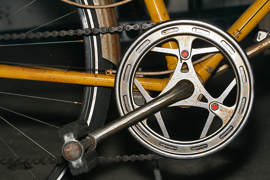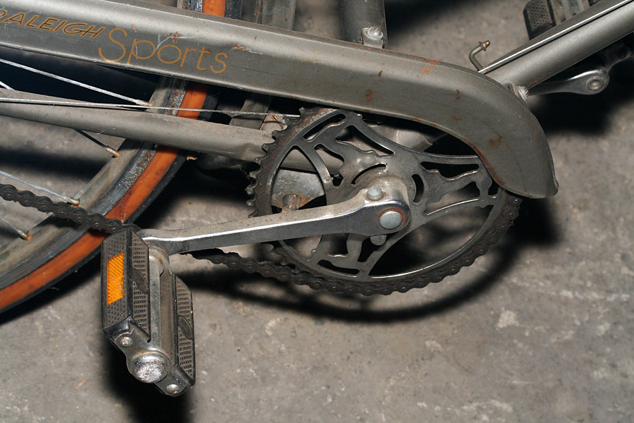 the 2nd bike is one i've checked out before, an old raleigh 3-speed. back then i was admiring the little details on the bike, from custom "R" bolts to chainring with raleigh crane silhouettes. this time i was more interested in the mechanics, from the cottered crankset, to the 3-speed hub drive. the biggest problem on this bike is the shifting currently doesn't work.