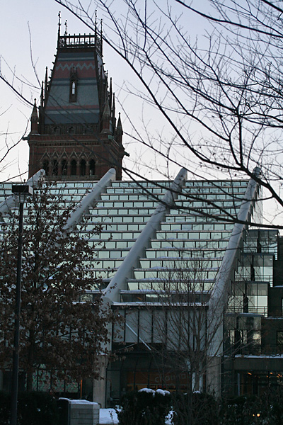 for lunch i ate half a rotisserie chicken. i went across the street to buy a few boxes of clementine oranges (on sale at star market this week at $4.88) before getting back on my bicycle and heading down to the cafe to drop off some supplies. i went a slightly different route this time, managed to shave off about a quarter of a mile from my usual distance. passing through the harvard smithsonian center for astrophysics, i finally noticed the usual dozen or more bicycles normally parked along the racks were down to just 3 bikes. this may either be due to the snow or a lot of the cycling staff have gone away for winter break.