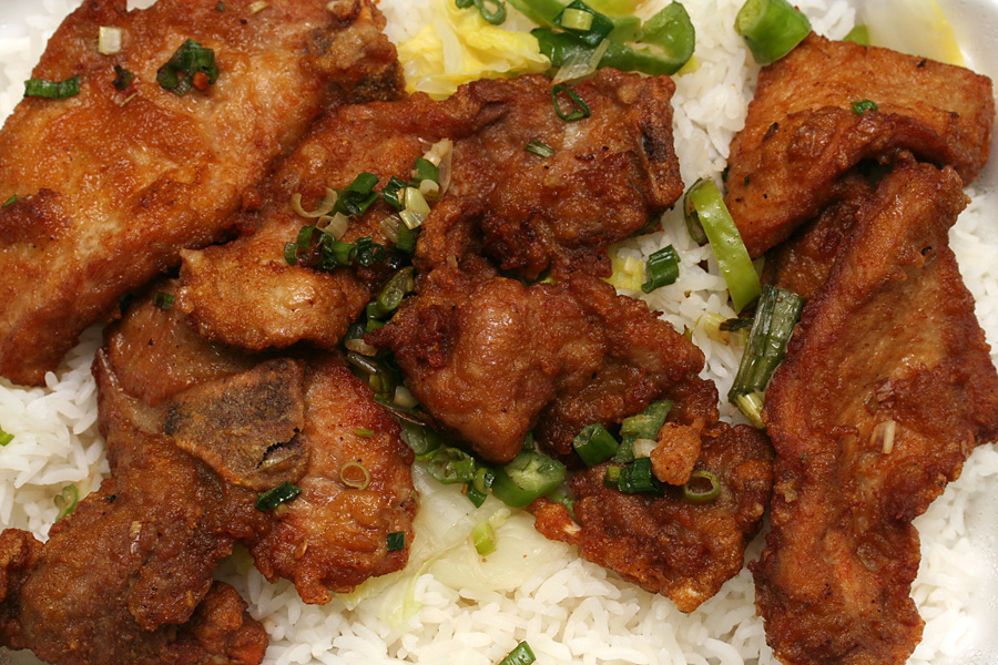 after we said our good byes, i went about wandering through the streets of boston, looking for photo ops. it wasn't the right day for the haymarket, but i went to a neighboring butcher shop (puritan beef) and grabbed a few bags of frozen goat meat. it was still a blustery sort of day, and even with the gloves on my fingertips still hurt from the cold. from faneuil hall i went down kilby street to liberty square (checking out the appleton building), then made my way to broad street and out to the greenway. from there i followed the path all the way down to chinatown, where i picked up a few grocery items from the lincoln street c-mart before walking further to the chinatown cafe to get a takeout of the spicy salt & pepper pork chop rice special.