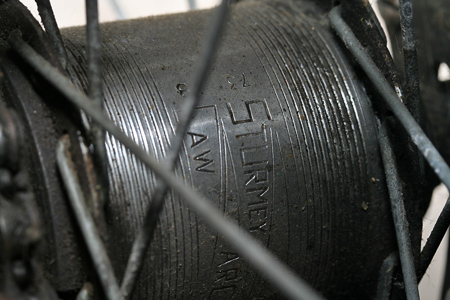 after lunch i biked down to the cafe to deliver the goat meat, along with some scallions and a few bags of my mother's favorite chinese sunflower seeds. i finally got a chance to use the bike computer, but i didn't have it mounted correctly and it ended up rolling onto the other side of the handlebar so i couldn't see the readout. i went into the basement to inspect the bicycles. i finally found a manufacture date on the sturmey-archer hub for the raleigh bicycle: august 1973.