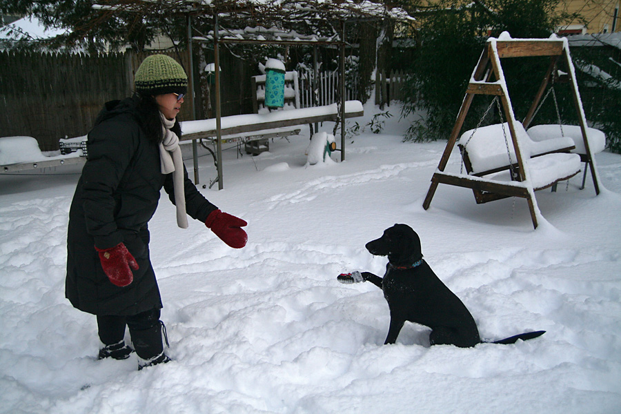 hailey loves running in the snow and loves to chase after the snow dust she kicks up. but like a child, she doesn't know her limitations, and my sister had to bring her back inside the house when we saw her shivering, even though she wanted to stay out and play in the snow. my mother commandeered my laptop so she could do some online shopping. she was also raving about the new pedegg she got (which, according to the recent issue of consumer report, is actually better than a pumice stone in exfoliating dead skin).