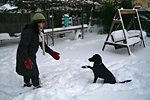 and to get some exercise. i noticed some of the newer neighbors didn't bother to shovel the sidewalks. these will probably be the same kind of neighbors who won't mow their lawn in the summer. later my mother came out to clean the snow off the car and my sister took hailey for a walk around the block. she let the dog run around in the backyard afterwards. by then the snow had pretty much stopped.