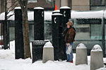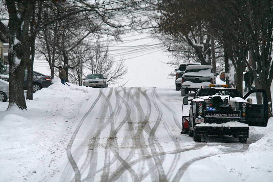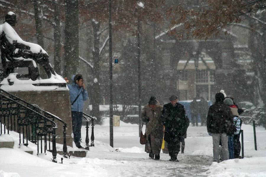snow presents all sorts of interesting photo ops, but i was rushing to get to my parents' house and only had time to take a few random snapshots when i arrived in harvard square. i had my camera with the telephoto lens and kept my equipment dry by tucking it inside my open winter jacket. i didn't have to wait too long before i caught the 73 bus (usually on sundays there's a 20 minute wait). i figured it'd be a scenic ride into the suburb but the windows of the bus were caked in so much road salt that it was nearly impossible to see outside.