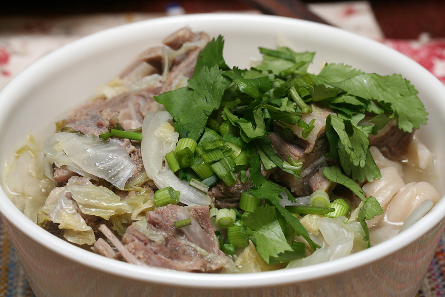 my sister made a bunch of dishes for dinner but all i really wanted just some more goat noodle soup with a dollop of spicy sichuan sauce.