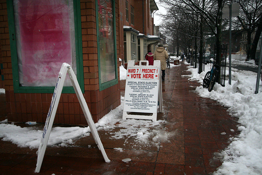 the local voting station is only 2 blocks away from my house as i walked down to cast my vote in the special state election to pick a new massaschusetts senator.