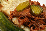 apart from the rice wine, there was also a lot of leftover juices, which i threw away. any part of the pork that wasn't covered in liquids ended up being a little dry (so in the future, add more fluids). i then put the properly shredded pork back into the crock pot, emptying the full 16 oz. content of the BBQ sauce into the mixture as well. the final pulled pork was okay, but i wonder if it would've been better had i slow cooked with the sauce from the beginning. there just seems to be a slight blandness in flavor with the pulled pork that i made tonight. another future idea would be to create my own BBQ sauce (a combination of apple vinegar, brown sugar, and other ingredients).