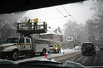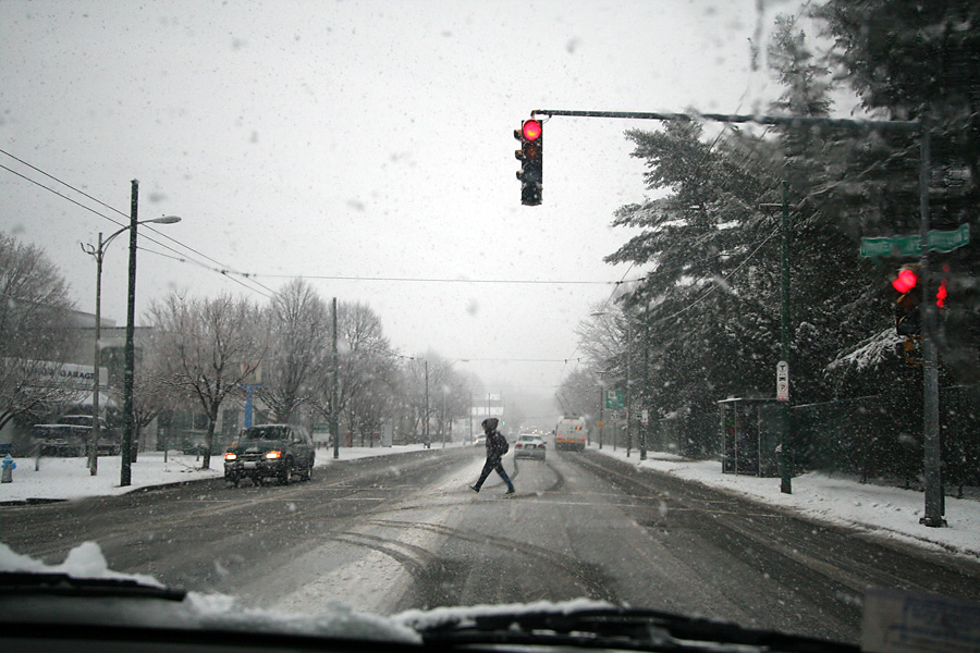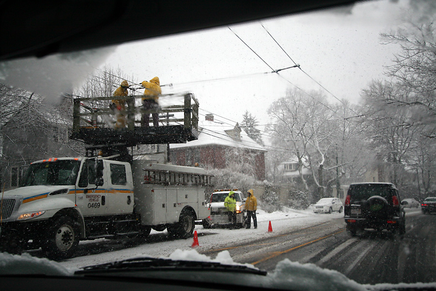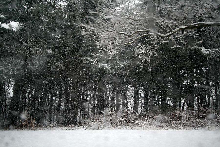 my father came to pick me up in the afternoon so i could go over to my 2nd aunt's place and fix her cable. it'd snowed a little bit early in the morning, but then transitioned into rain. now it was snowing again, in large wet clumps. the cable problem turned out to be exactly that: a bad cable wire was interfering with the reception. with that fixed, my father was supposed to drive me back home, but he had two food deliveries to make, so i tagged along.