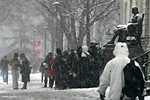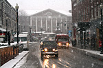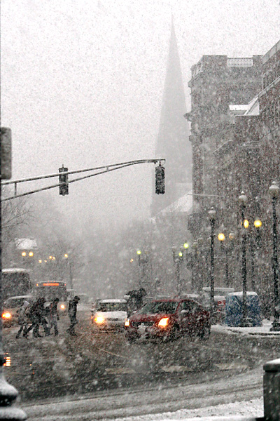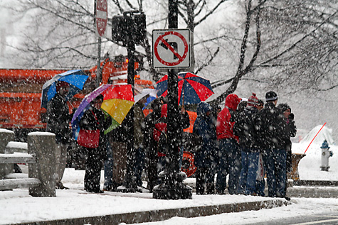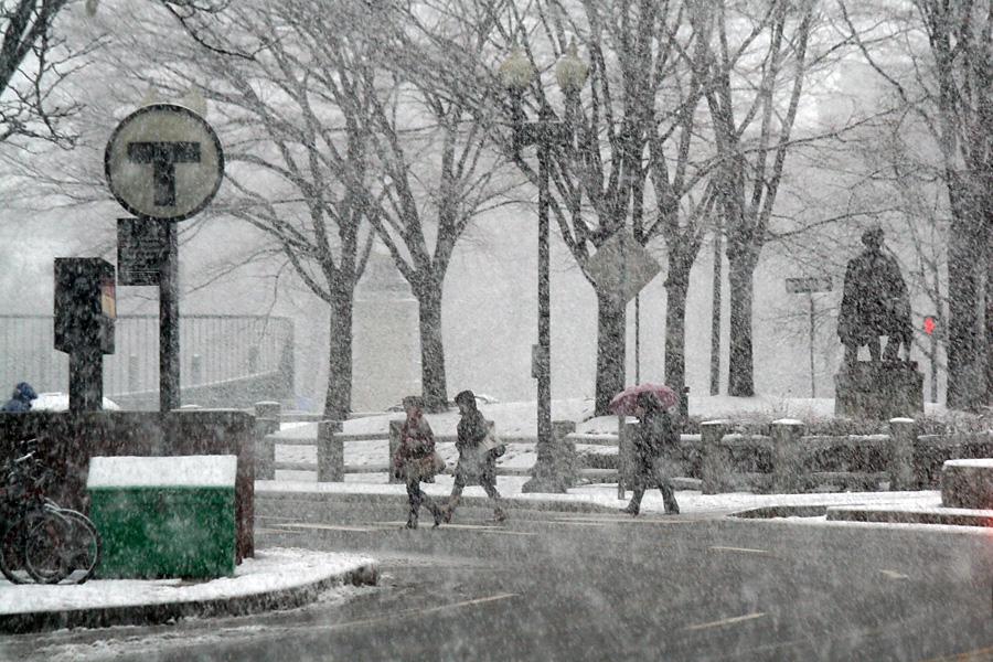 once i came home, i changed into my more heavy duty winter clothes and went back outside wearing my boots and carrying my umbrella. i walked to harvard square looking for interesting photo ops. conditions were pretty miserable. despite the umbrella, my jacket was still covered in windblown snow. when i finally returned home, i was pretty much soaked from head to toe.