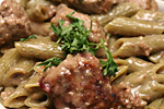 even though it was his day off, my father still had delivery duty in the evening because the restaurant's regular delivery person was on vacation. so dinner was once again just with my mother and sister. my sister spent an hour and a half in the kitchen making some pasta dish (spinach pasta with meatballs). i was so hungry by dinnertime that i had two servings.