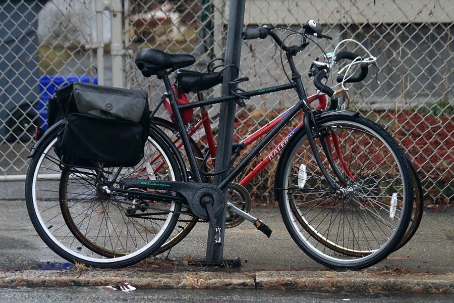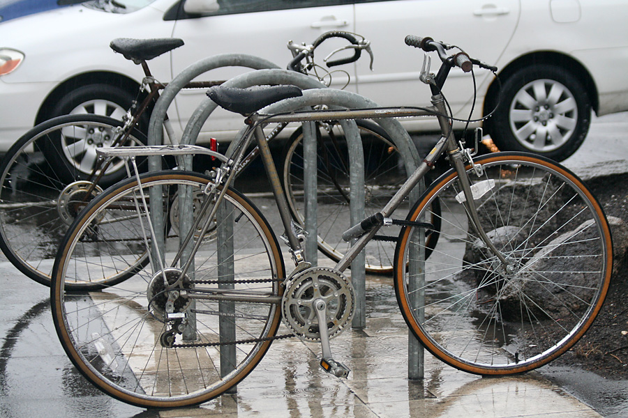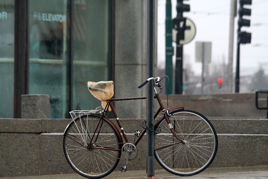 returning home, i snapped a few photos of the bicycles i came across. "insurance or art?" a man asked me when he saw what i was doing. we ended up having some meaningless chitchat while the rain continued to fall and drench everything around us.