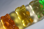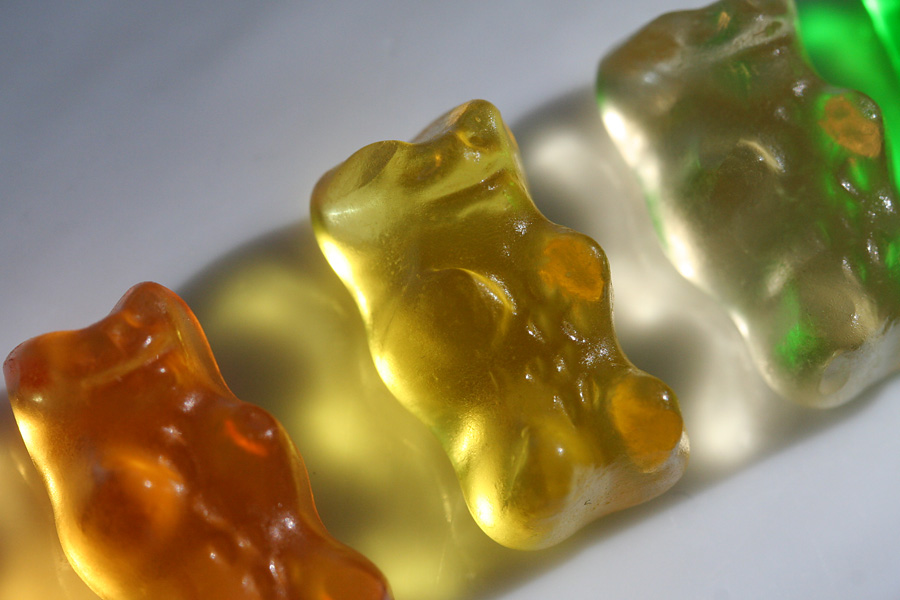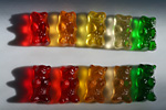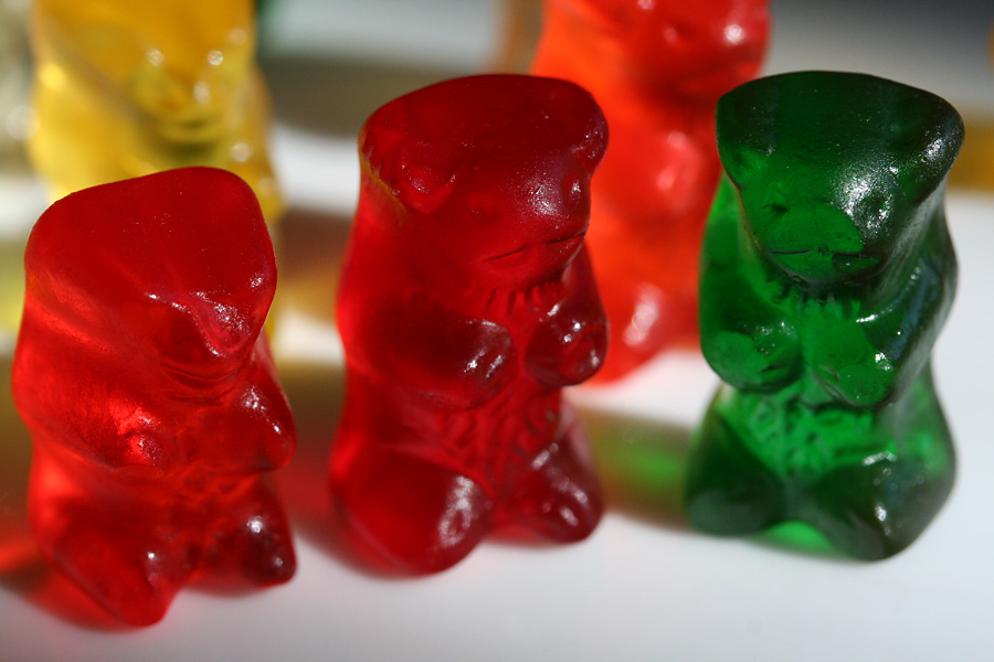 more like melted playthings. maybe that's why they don't call them gummy bears but "gummi candy." there's a hint of fur pattern but it looks more like stab wounds. the gummy is also on the hard side. another bit of trivia: they're actually made in turkey.