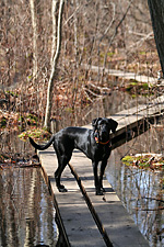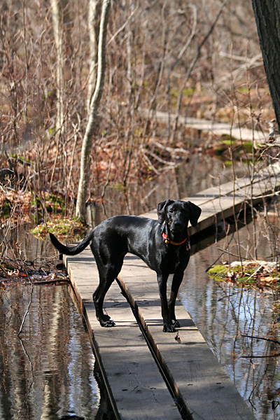 after making the loop around magnolia swamp, we made our way to the quarry. we met an old man named lou walking two small dogs. turns out he's the "official" photographer for the trustees. we chatted for a long time, the whole time hailey was running around and playing with the 2 dogs. after while she got bored and became angry and started barking farther along the trail, seemingly telling us to hurry up. lou told us about a pair of breeding great horned owls who can usually be found in the eastern treetops when you first make your way into ravenswood. he also mentioned fox sightings.
