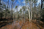 old salem road is the main trail that bisects the 600 acres property, but we didn't get as far as trail marker 1 before we hit a large pool of flood water. we ran into an older couple with a dog who seemed to know the area a little better, and told us to take some higher but rockier trails to our east. instead of taking their advice, we made our way west to the magnolia swamp trail. supposedly closed due to flooding, we crossed the caution tape and made our way down. despite the warnings, we actually didn't come across any flooded trails.