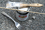 i realized right away that i couldn't easily get to the bracket with the small brush i purchased yesterday. even after trimming the bristles to make it smaller, it was still too big and would've made a mess. so i found a spare sponge brush and cut off a long sliver and painted with that. even then there were still some spots i couldn't reach.