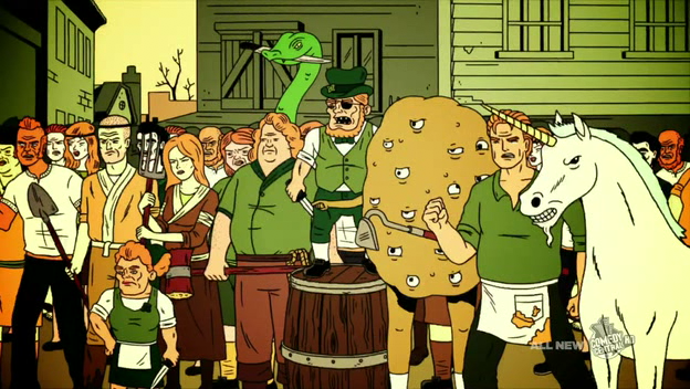 bored, i leave (who does that anyway? leave during the grand finale?) and go outside dressed like a leprechaun wearing a santa hat. why? well, the leprechaun outfit happens to be the uniform of the lab, but just so happens there's also a parade outside - a st.patrick's day parade! gravity somehow doesn't affect me anymore and i have the ability to leap-fly. i jump over the spectators waiting along the sidewalks, they don't pay much attention to me. where am i? it feels like a mix of boston-new york-shanghai-tokyo, but the streets (other than the few onlookers) are empty. i leap onto an overhang of a building to watch the procession. the parade is more pride than irish celebration. tall drag queens dressed in green boas prance down the road, and a crew of young people wearing plush fruit costumes stop midway to pose for cameras. i regret not bringing my own but i'm also still feeling guilty over having left my friends back at the lab.