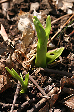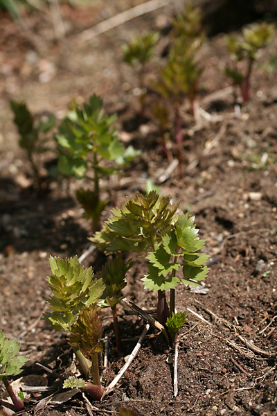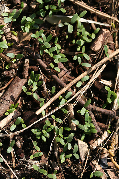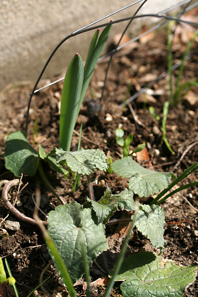 there was a carpet of little sprouts which i'm guessing are garlic mustards. any plant that can growing this early in the season at in such abundant numbers has got to be a weed of some sort. i have to remind myself to dig them all up over they get any bigger. my dream is to eradicate garlic mustard completely from the backyard, but i heard the seeds can have a 7 year lifespan.