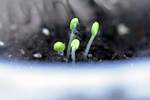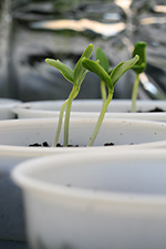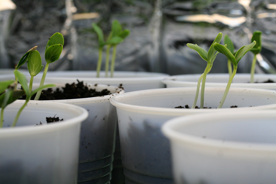 so what sprouted? the cucumbers, the fancy gourds, tomatoes, and the basil. only one of the morning glory sprouted, and still waiting for the moonflowers, the bottle gourds, and the mixed hot peppers.