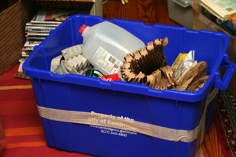 in the past i just used tomato sauce, but i tried a can of special pizza sauce this time. verdict? didn't really notice the difference, still not like the tomato sauce found in professionally made pizzas. later i sorted my trash, tossing out a box load of old magazines.