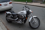 on my way back i spotted a white honda shadow spirit 750, the exact same model that i own. it was parked by the lesley schools. i'd never seen another one before, and just blocks away from where mine was parked! because these bikes have digital readouts, i couldn't tell how many miles it had, but it looked to be in pretty good shape. i didn't see any modifications, other than a pair of saddlebag brackets (i also have brackets, along with a backrest and a windshield). i hoping this is a regular and i might get to meet the rider one of these days.
