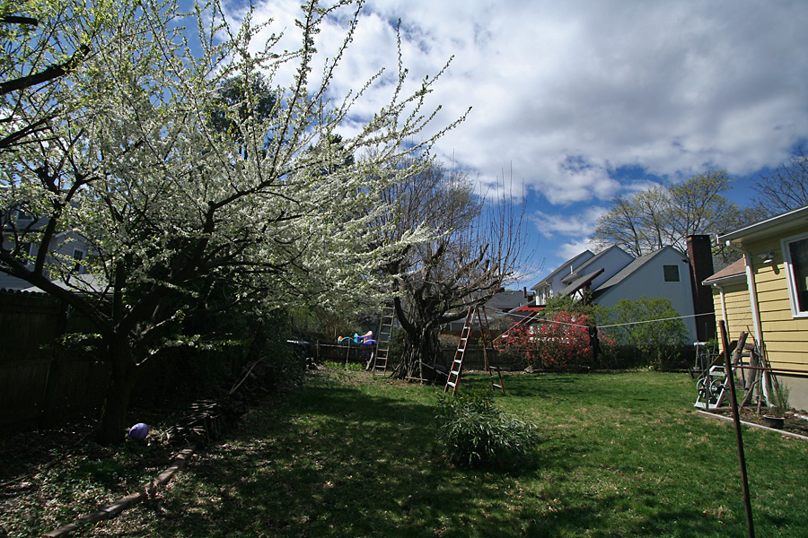 the hostas have finally began to emerge in my shady perennial garden on the eastern side of the yard. i've dotted the area with tomato cages to prevent the dog from stomping on the delicate shoots. what i thought were peonies from last weekend are actually the pair of peach blossom astilbes i planted last november (there is however still a stray peony).
