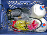 however, once i got outside, that's when i realized the obvious. it's funny, but i use milk crates to hold everything except for milk. so imagine my sudden surprise when i realized milk crates are designed for holding gallons of milk, and that i could've carried 6 gallons if i wanted to (although balancing 50 lbs of moo juice on the back of the bike would probably make for a wobbly ride).
