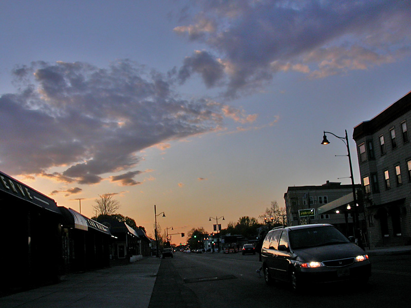 i have no idea how dogs can tell time. i left soon after feeding her, wanted to get back home before it got dark. i swung by the cafe to let my sister know i'd left the house. i called wing works and rode to davis square to pick up an order of gourmet wings. it was already starting to get dark by the time i made my way home.