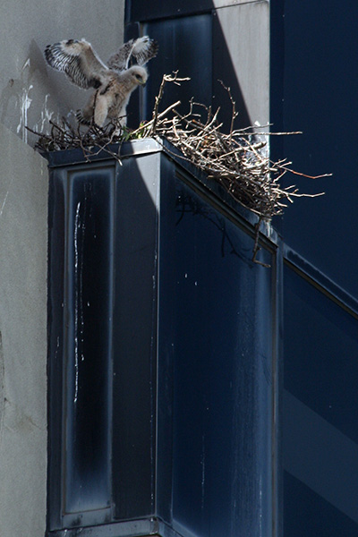 today: went over to my parents' place, dug up some runaway bamboos1, visited home depot to get some fertilizer2, bought some slug poison (they've already eaten more than half of my lettuce seedlings3), and biked down to the new fresh pond trader joe's to go see a hawk's nest4.
