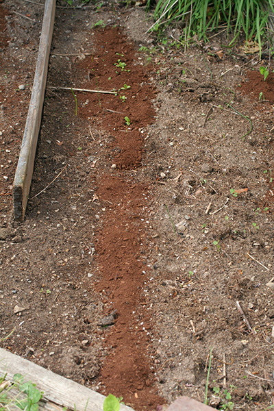 2 i borrowed the car and drove to the watertown home depot since i had to buy bags of fertilizer (one bag i can carry on my bike, but any more and it's a wobbly deathtrap). cow manure sold for $5.77 a bag (city folk price for bovine shit that on a farm would be free) and i also got a 3 cubic feet block of canadian peat moss ($8.97, beats a little bag of peat that sells for almost $4). couldn't leave the depot with my hands on some more seeds - a packet of burpee ruby queen hybrid sweet corn ($1.49). finally, some pea netting ($4.97, 5ft x 15ft).