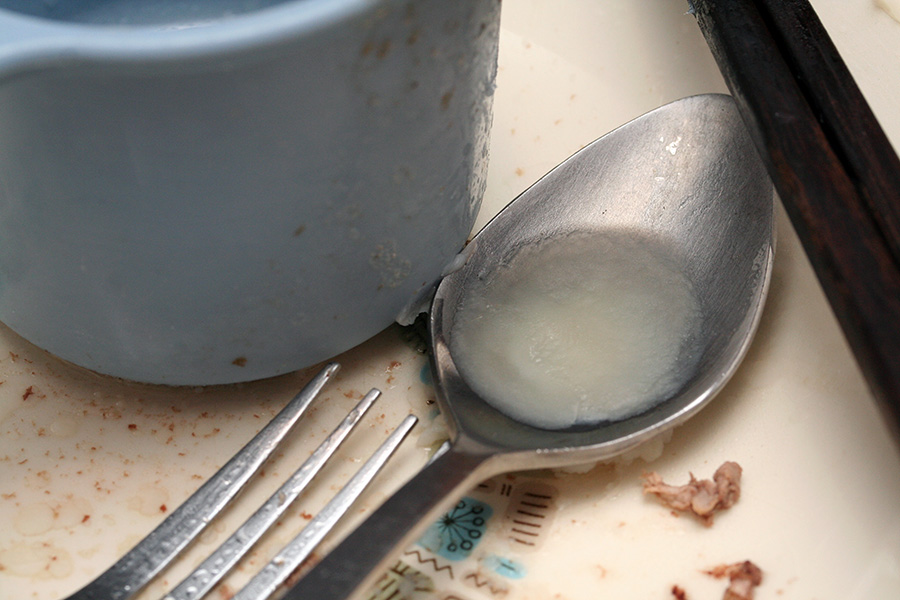 with all these extra ingredients, the pork smelled better than last time. as the meat rendered, it started to leak out juices which i scooped out a bit of to prevent the crock pot from overflowing. attracted to the aroma, i gave the broth a taste. despite the fragrances, this "soup" was pretty bland, and extremely oil at that. i added some more salt but then remembered eventually all this broth would be thrown away, so no point in trying to get it to taste better.