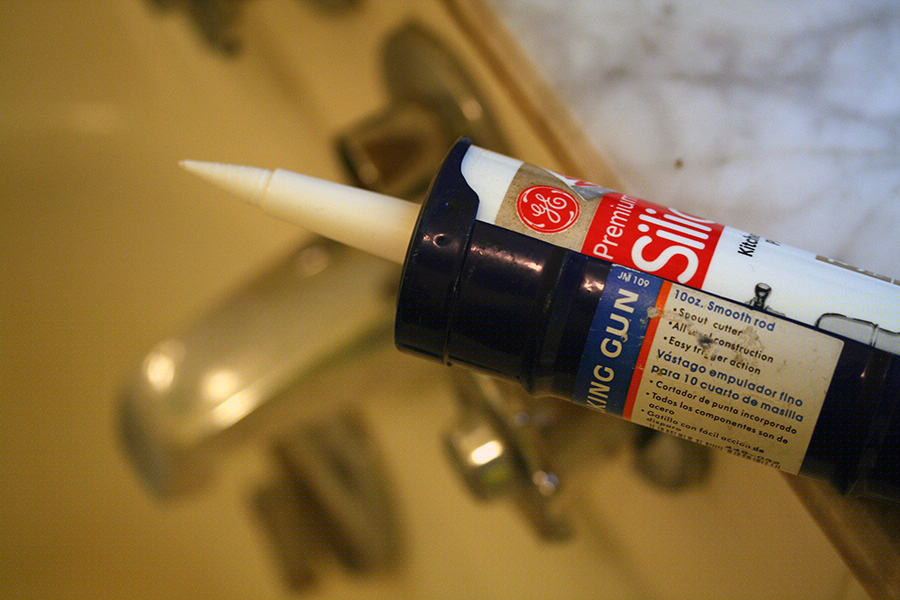 so i finally decided to re-caulk the tub. i'd stripped out about half of the old caulk a few weeks ago, and got around to taking out the rest today using a combination of razor blade and awl. the awl is a weird tool and i'm not even sure what it's usually used for other than a very professional-looking prison shank. but for digging out old caulk, it's pretty good. i've been using acrylic latex caulk (dap kwik seal plus with microban, the kind that comes in squeezable toothpaste tubes) but wanted to try something else because even though it's mildew-resistant, i still get mildew in 4-6 months. i went with silicone, which from my research online seems to be very difficult to work with (but more durable), so i was a little bit worried.