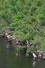 after getting some lunch takeout in chinatown, i returned home. crossing the western avenue bridge into cambridge, i spotted a black-crowned night heron landing by the bank of the charles river. i grabbed my camera to get a few snapshots. through the telephoto lens i was shocked to see not just one night heron, but actually several, all standing creepily along the riverbank.