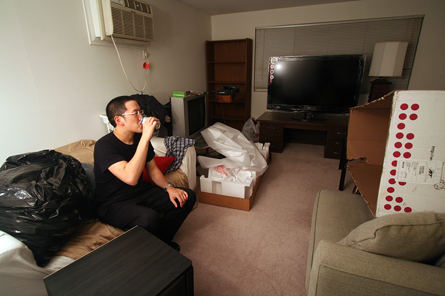 jack dropped me off at my parents' place then quickly swung over to his mother's to eat dinner and pick up a stereo system before coming back to get me and my father. we drove the element and followed jack in his car to his new apartment in waltham (prime location, right off of moody street). we helped him move all the stuff inside and checked out his place before leaving.
