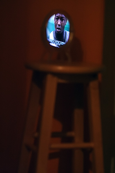 the pivotal game 6 between the celtics and the magic was tonight. even though boston was still up 3-2 in the series, orlando had won the last 2 and had momentum on their side. the game was in boston though, so theoretically celtics should have the advantage, but with a better road record, a home win wasn't a guarantee. somewhere in the first half i had to use the bathroom but didn't want to miss the game so i used a strategically angled mirror balanced on a barstool so i could still watch the action from the bathroom.