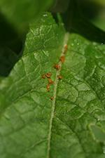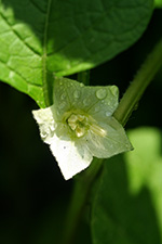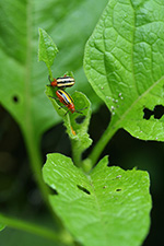 i have chinese lantern plants growing in my garden. there was a time when i thought they'd been killed during the winter, but left undisturbed, they've resprouted once again, bigger than before. i can see how they can become invasive. chinese lantern flowers are white, but become orange when they mature into the lanterns. related to potatoes, they've attracted the unwanted attention of 3-lined potato beetles, and a severe infestation could defoliate the plants. i'm thinking about whether i should do some hand picking of the beetles and their eggs.