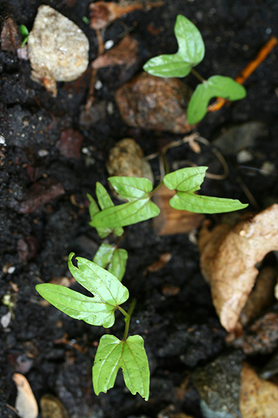 some of the morning glory seeds i planted in the community garden have emerged. they're different from the wild morning glory seedlings i have in the garden with their longer leaves. not sure if they'll survive though, the place is a killing zone for young seedlings; i noticed bits and pieces of the leaves have already been eaten.