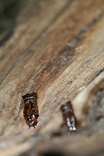 there used to be 3 apple trees in the backyard, and now there's only one. we chopped down the one that used to be in the southwestern corner a few years ago. this year we're converting that corner to a corn and sunflower garden. the one surviving apple tree is riddled with disease, as yellow spots dot the leaves and the apples are all deformed and stunted. the tree in the southeastern corner is essentially a hollow tree trunk with a single surviving branch overhanging into a neighbor's yard. it's on this tree that i noticed some strange protrusions emerging from the trunk. it took me a few seconds to figure out they were the empty husks of recently emerged apple tree boring beetles. these are a pretty awful pest to have since just a few can kill a tree, but tree is pretty much dead anyway. more the reason to completely chop it down in the fall.