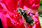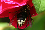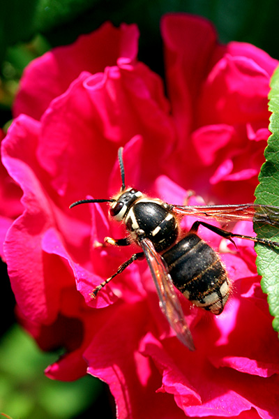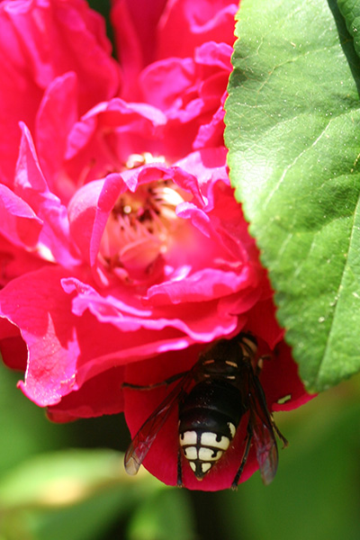 i managed to get a few photos of a bald-faced hornet drinking nectar from some roses. they're pretty fierce looking and are bulky in size. i've seen them before but never able to get any pictures. this particular one that i saw is actually a queen, fueling up to start her nest and give birth to daughters who will then take care of her so she doesn't have to forage for herself anymore.