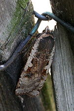 i also saw an underwing moth. it flew onto the fence when i disturbed its hiding place. i didn't know what kind of moth it was at first, until i saw it flying away and noticed the yellow/orange patches underneath its wings. otherwise it's a very nondescript moth with great camouflage.