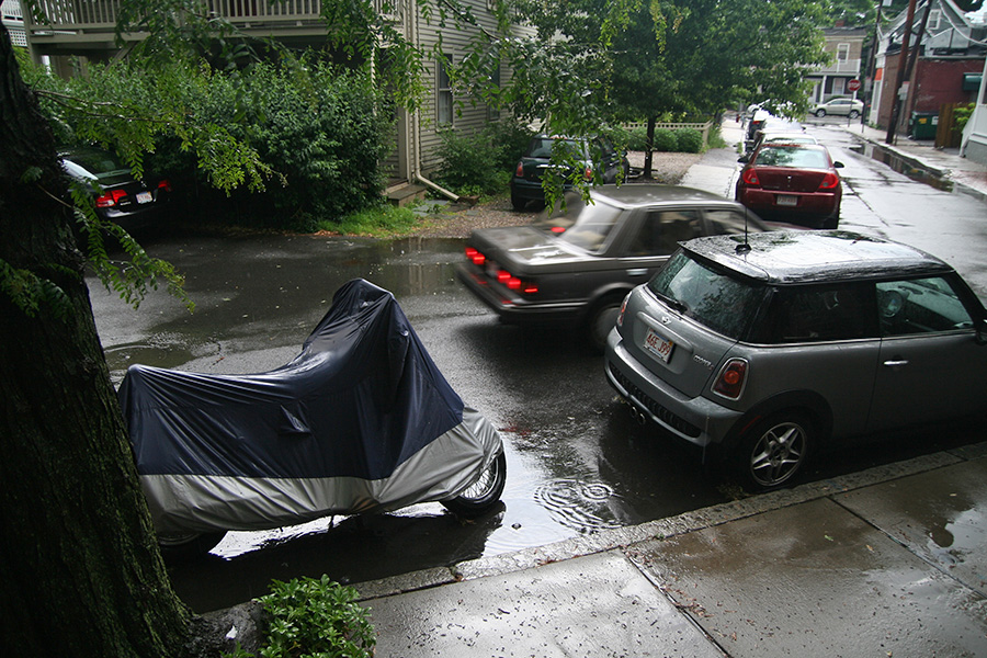the first half of the day was calm, and i could've gone out, but a check of the doppler radar showed bands of storms about to pass through the area. the sky would suddenly darken and nature would put on a show, raining, thundering, flash lightning, and howling winds. it was so bad that visibility was cut to zero at times. the streets temporarily flooded as the storm drains were suddenly overflown with water. i thought about going down to harvard square to get some rain photos but decided to stay indoors and keep dry.