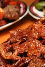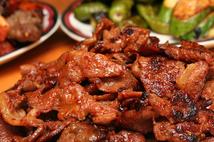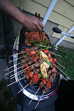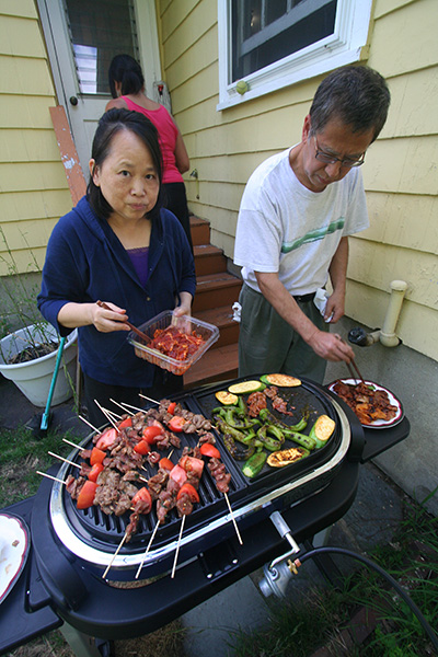 we ended up having some barbecue for dinner. instead of the usual barbecue grill, my father elected to use the coleman roadtrip grill LX i brought back to belmont a few weeks ago. one reason was just to try it out for the first time, but also because it had a griddle to cook the meats korean barbecue style.