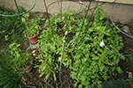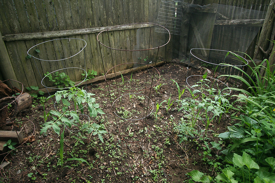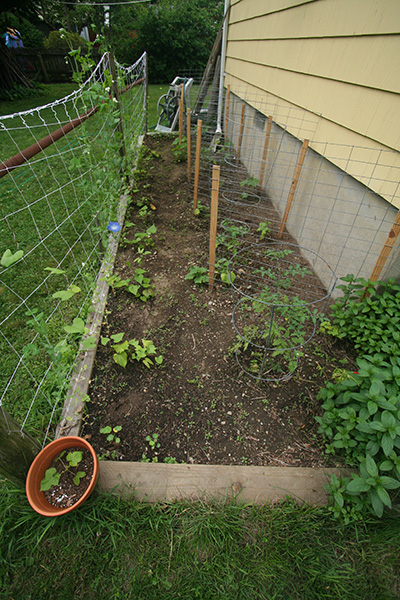 we gave my aunt a tour of the backyard garden before she left. since we don't get many visitors, it was a rare opportunity to show off some of our hard work. i also dug up a bunch of surplus golden raspberry plants for her to take back home and plant.