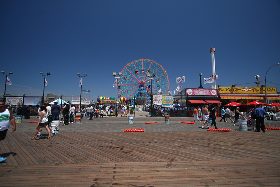 i got to coney island at noon but the parade wouldn't start for another 2 hours. i decided to take a stroll down the boardwalk. it was a very hot day (but a dry heat though). fortunately i had the foresight to bring along my SPF45 sun block, after getting burned a few years ago. i also brought a hat to prevent my head from cooking under the sun.