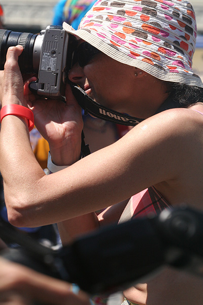 it didn't seem that long but it took me about an hour to get down to coney island riding the Q train. i sat across from a girl dressed as a mermaid with a banner across her chest proclaiming herself as "miss fag," with her two presumably gay friends, one dressed a lobster, the other wearing a violet wedding veil. they sat next to another exuberant young man who couldn't stop talking about how excited he was to see the mermaid parade and couldn't wait to start drinking a bottle of vodka he had in his backpack. "hey you! you going to the parade?" he asked me at one point. "yeah, i knew it, from that big camera!"