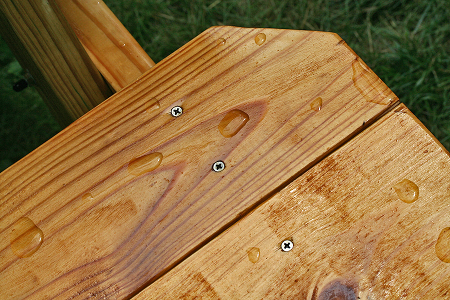 i hovered around belmont for a few hours, until my mother left for work in the afternoon. she made some noodles for lunch, and i went outside to admire the water beading on the successfully oiled picnic bench.