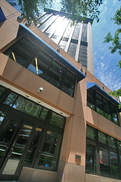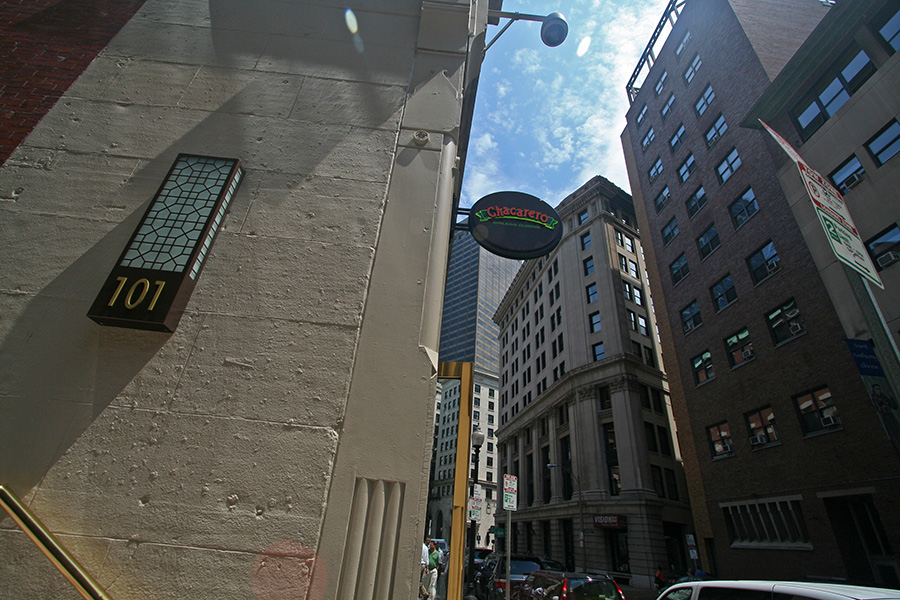 from downtown crossing i cut through chinatown and then the theatre district to get to copley square. i found 101 huntington avenue, but the doors were locked. i called elias, we told me to walk around to the entrance on the other side of the building. two ladies taking a smoking break outside overheard my conversation and let me into the building with their security card. they also got me a ride on the elevator, which required a card to get to the lobby, where i took another elevator to reach the 22nd floor.