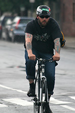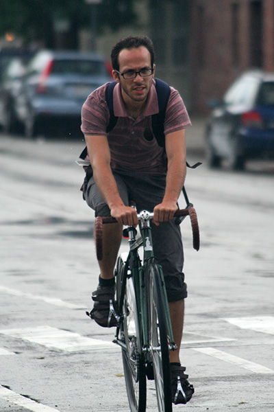 just standing outside for 5-7 minutes i managed to capture a few cyclists (beacon street in somerville is a major thoroughfare for bike commuters into and out of boston). the rain had pretty much stopped by then, but many were already soaked from earlier. most wore helmets, and many had 700c road tires. i wonder if that makes a big difference for commuting?