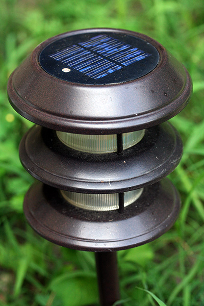 these new solar lights aren't as stylish as the 2 preexisting solar lights already in the garden. the old lights also seem to have a better build (2-tiers), although having sat outside for all these years, their batteries can barely hold enough charge for just a single hour of illumination before going dark. these new lights supposedly can hold 10 hours of charge depending on their daytime light exposure.