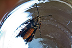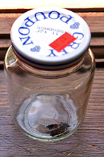 next came my gardening coup: the capture of the squash vine borer. it's like the garden equivalent of apprehending osama bin laden. just by chance i saw it flying about the vines, landing to deposit eggs. i grabbed another plastic cup (they seem to be everywhere in the backyard, although i did have to dump out all the stones inside) and hurried attempted to swat the moth into the container. it was dodgy, but probably wasn't expecting to be imprisoned, and i finally managed to detain it. my only hope is that this is the only SVB visiting the garden and i managed to end the danger (at least until any undiscovered eggs hatch and start attacking the vines).