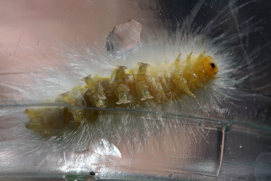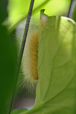 on my now what seems to be a daily survey of the garden, i came across a few invaders. first was the hairy white caterpillar crawling on the nasturtiums. something that hairy made me immediately think it'd be poisonous, so i used a stick to tap it into a plastic cup. it was a fat caterpillar, so i inspected the nearby leaves for damages but couldn't see anything. my father did say a week ago that he saw caterpillar droppings. after some research, i found out it was a yellow woolly bear (Spilosoma virginica). as a whole i have no beef with woolly bears, and despite the fact that their indiscriminate feeders, normally they just dine innocuously on lawn clovers. i ended up releasing the caterpillar in a safe area of the yard.