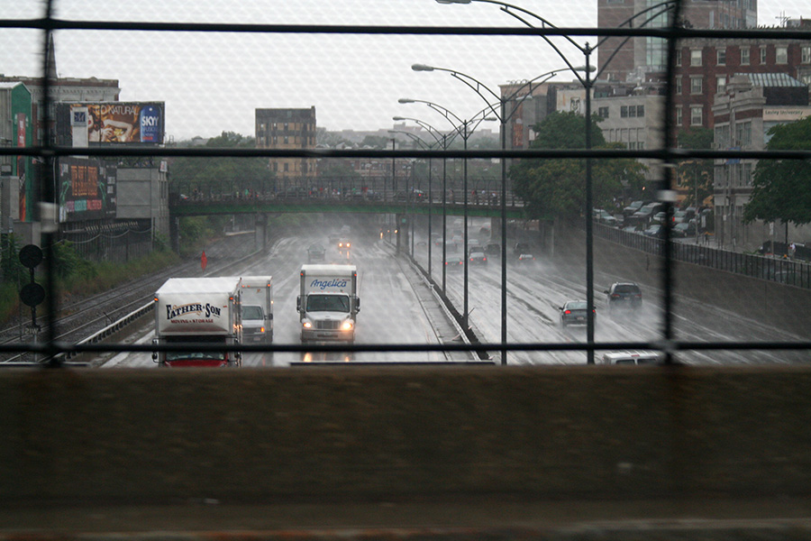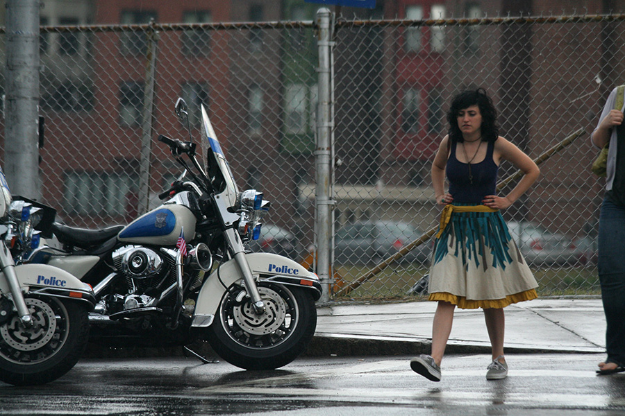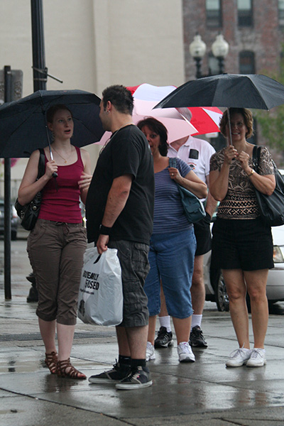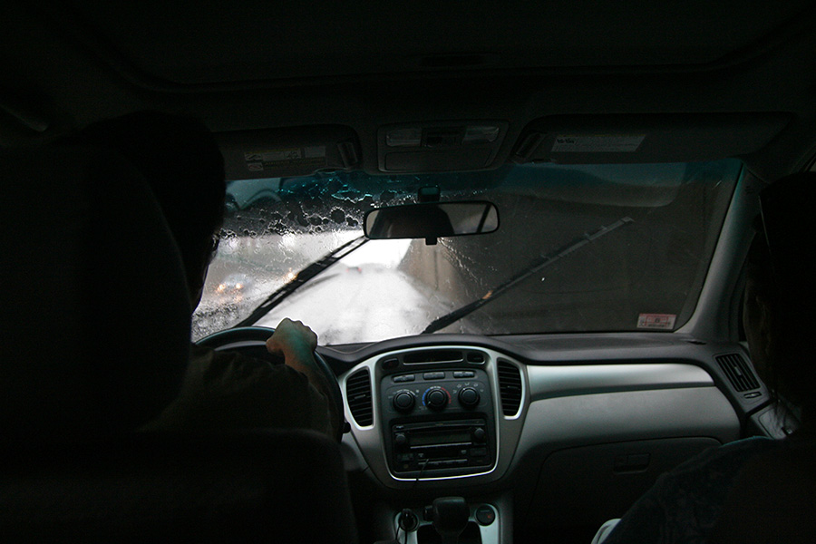 the drive back through mass ave wasn't that bad. for some reason there were motorcycle police officers standing at each street corner. when we approached berklee, there were lines of young people crowding both sides of the street, trying to find some awning space to dodge the rain that was slowly starting to fall. by the time we made it to storrow drive, it started to pour, to the point where visibility was almost nil. i was afraid the underpasses would be flooded but things were dry - for now. after my father dropped us off in belmont, he left for the cafe to unload the supplies. the rain came down even more at home, and i could see pockets of flooding on the lawn.